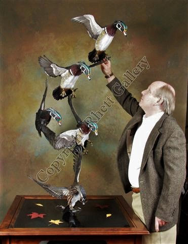 William Means Rhett, Jr. is most noted for his wood sculptures created feather by feather. He has had place of honor in the prestigious Easton Waterfowl Festival that is held annually in Maryland. He exhibited his work for many years in the Crossroad of Sport Gallery in New York and has exhibited at SEWE(Southeastern Wildlife Expo). His work has been sold through Sotheby's and is displayed in museums and collections, both public and private. in 2002 he began to paint wildlife and hunting scenes in oils and has now gained national publicity. His originals and Giclée prints are exhibited in the gallery.